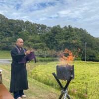 たわわに実る金色の稲穂に囲まれ晴天の中御焚き上げ致しました。