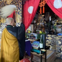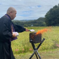 皆様からお預かり致しました御財布に感謝の気持ちを込めて本堂で御供養法要をお勤めした後、御焚き上げさせていただきました。