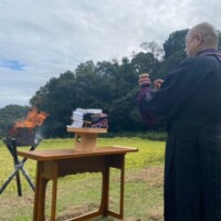 御焚き上げは境内地にて、この時期の永天寺は実りの秋、